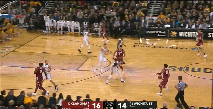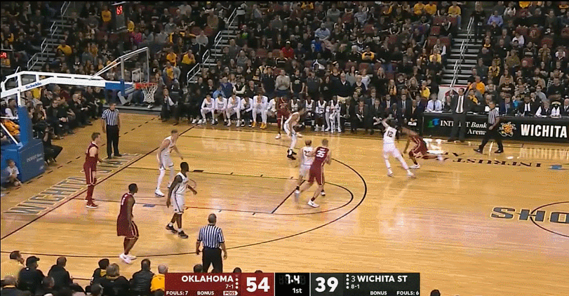 Young leads the nation in more statistical categories than seemingly possible. He’s currently atop the national leaderboards in (deep breath) points per game, assists per game, usage rate, assist rate, points produced, PER, and box plus/minus. To date, the Sooners have 10 wins and only one loss, dropping a game at the PK80 event to a strong Arkansas team. Prepping a scouting report to slow down Trae Young is a tall task that now faces every Big XII coaching staff. His offensive game is so well-rounded and complemented by his teammates that finding his flaws is far more difficult than simply trying to mitigate his biggest strengths. Using tape from the Sooners recent win over Wichita State, we’ll see exactly how Young enforces his will no matter how the defense counters.