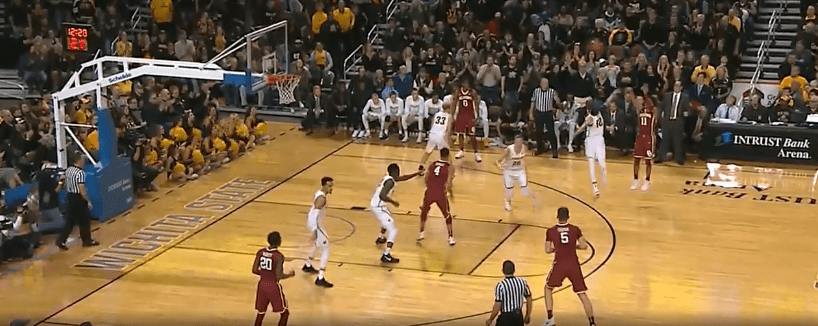 Young perfectly changes speeds and waits for each of the defenders he’s reading here to commit one way or the other. He draws the Wichita State rim protector forward, leaving his big man open for an easy bunny (though we’ll forgive Young’s teammate for the travelling violation here).