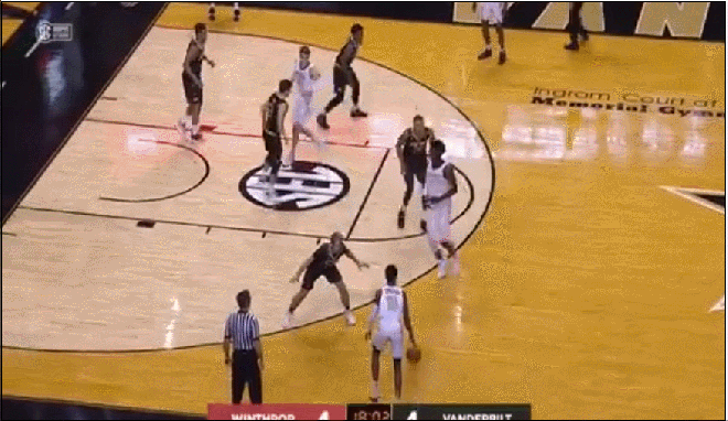 Garland looks very comfortable operating with the ball in his hands and appears to have all the necessary skills to be the point man for an NBA offense. This screen action that leads to a no-look pass (and missed dunk by 2nd round prospect Simi Shittu) is a good template of what Garland can do.