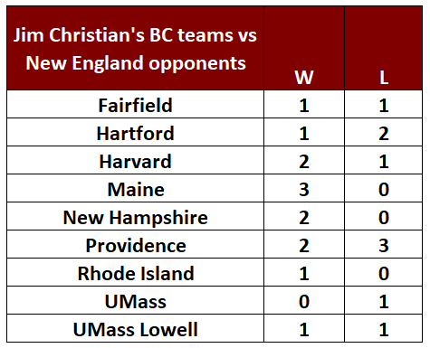In the years that have followed, that has proven to be the case. In more than six seasons on The Heights, Christian’s teams are 77-126 overall. In ACC play, Boston College is 25-88 during Christian’s tenure, starting 6-48 in his first three seasons. Games against the mostly sorry competition surrounding BC in New England have become an embarrassment.