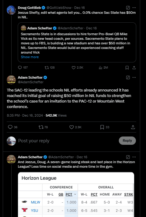 Now, as all of this criticism mounted, Gottlieb has taken to the site formerly known as Twitter to defend himself and his team. Saying that the Green Bay schedule has been difficult, including Michigan Tech. Yes, he’s trying to tell us that a D2 team that has 3 losses, including 16-point drubbing to Concordia-St. Paul, is a tough team on the schedule. Yes, he’s trying to tell us that KenPom’s 232nd ranked schedule is a gauntlet. Green Bay ranks lower in that metric than Horizon League mates Oakland (18th), Northern Kentucky (155th), Wright State (163rd), Detroit Mercy (204th), and Milwaukee (227th), all of whom also have more wins than Green Bay.